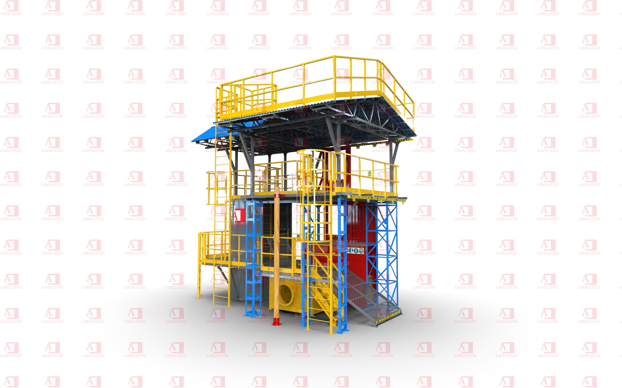 Доступ на рабочую площадку второго уровня осуществляется по стальной маршевой лестнице.
